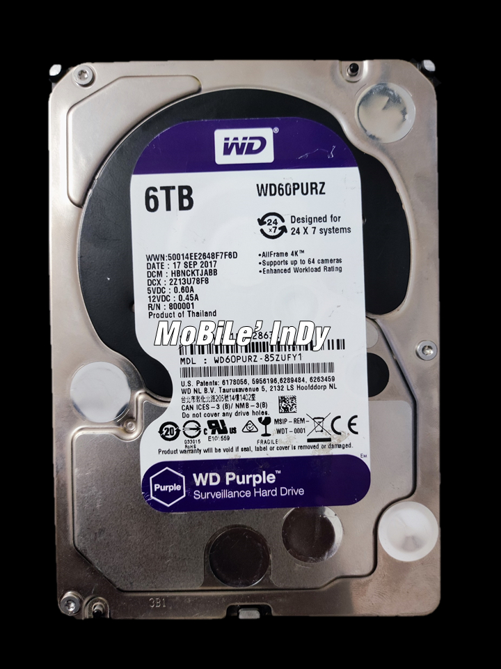 HDD FOR DVR HDD-WD60PURZ 6TB 24/7 WESTERN DIGIT...