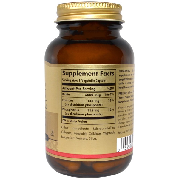 Solgar, Biotin, 5,000 mcg, 100 Veggie Caps - iHerb