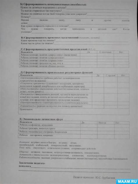 Образец диагностическая карта психолога